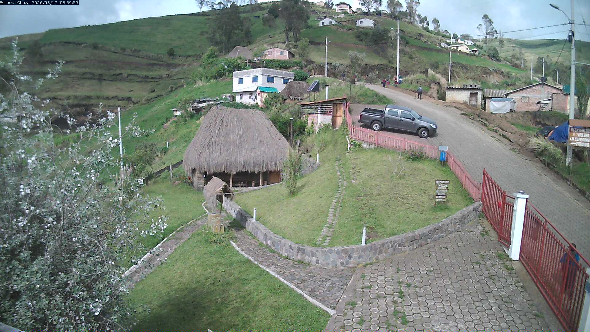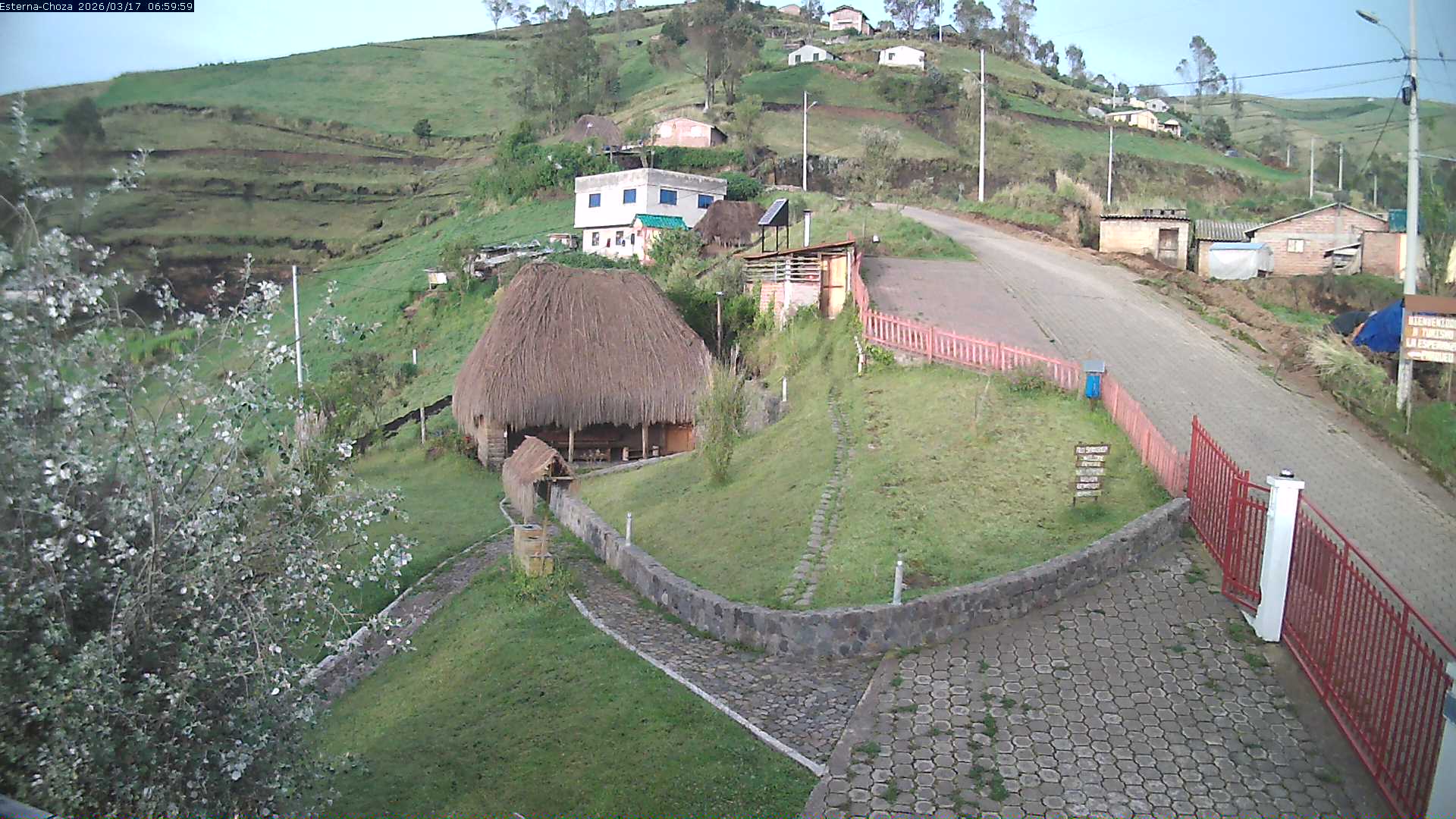 Vista de la Choza (casa construida en estilo tradicional utilizada para el alojamiento de los turistas) realizada en la comunidad La Esperanza, cantón Colta, Ecuador, a una altitud de alrededor 3.600 metros sobre el nivel del mar.